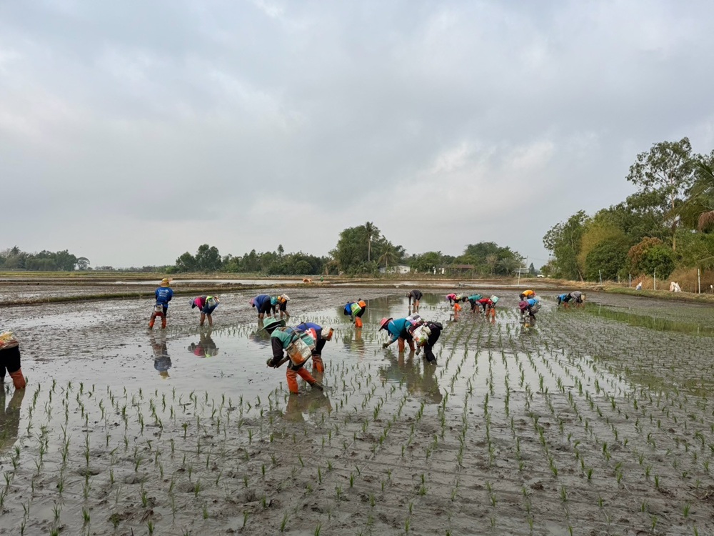 ทีมงานนักวิจัยได้ปักดำข้าวสายพันธุ์ปรับปรุงใหม่ จำนวน 6 สายพันธุ์ เพื่อทดสอบผลผลิตและการปรับตัวในแปลงเกษตรกร จ.สุพรรณบุรี