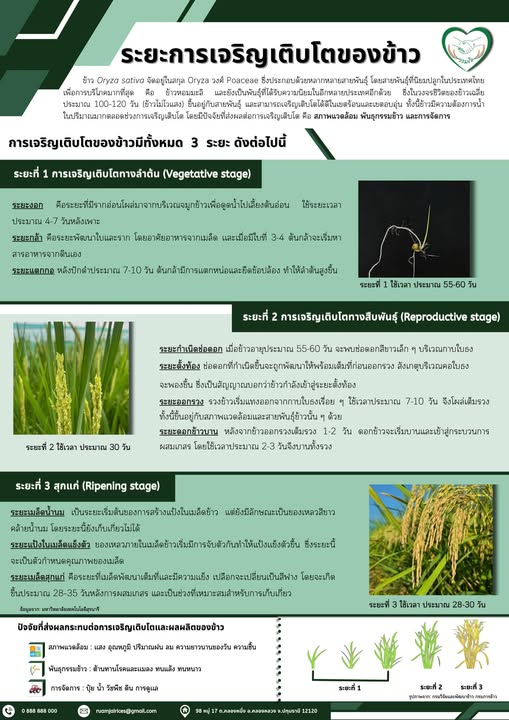 ระยะการเจริญเติบโตของข้าวมีทั้งหมด 3 ระยะ ดังต่อไปนี้