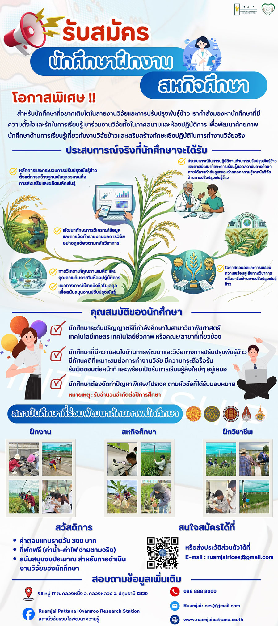 1. นักศึกษา สนใจเข้าฝึกงานและสหกิจฯ ติดต่อสอบถามที่ Line : rd_rjp