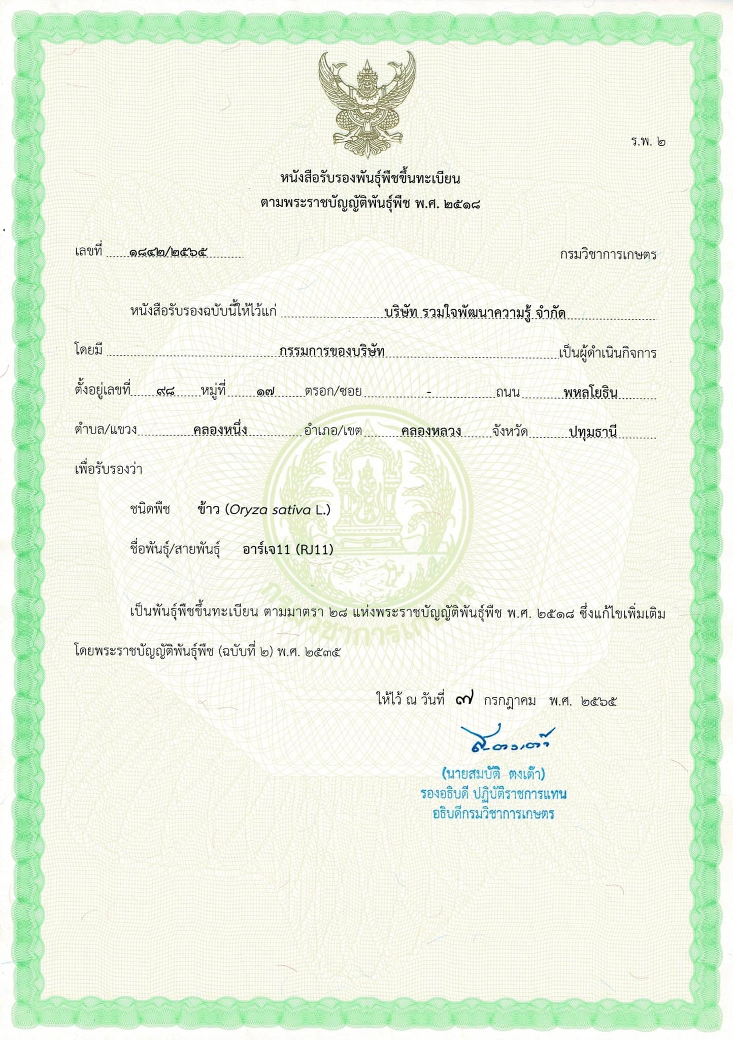 นาปี 2561: สถานีวิจัยรวมใจพัฒนาความรู้ จังหวัดปทุมธานี