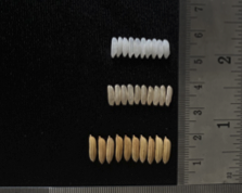 รูปร่างเมล็ดเรียว ประเภทเมล็ดยาวชั้นที่ 1 เมล็ดข้าวกล้องสีน้ำตาลอ่อน ข้าวสารใส ความเป็นท้องไข่ปานกลาง คุณภาพการขัดสีดี (47 เปอร์เซ็นต์)